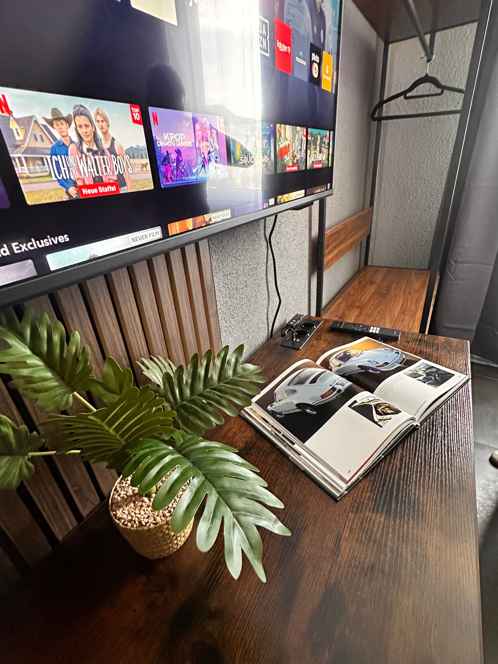 Genießen Sie moderne Unterhaltung auf dem Smart-TV und profitieren Sie von schnellem WLAN in allen Zimmern.